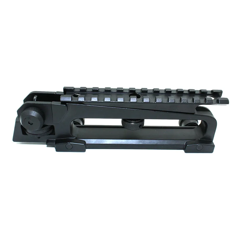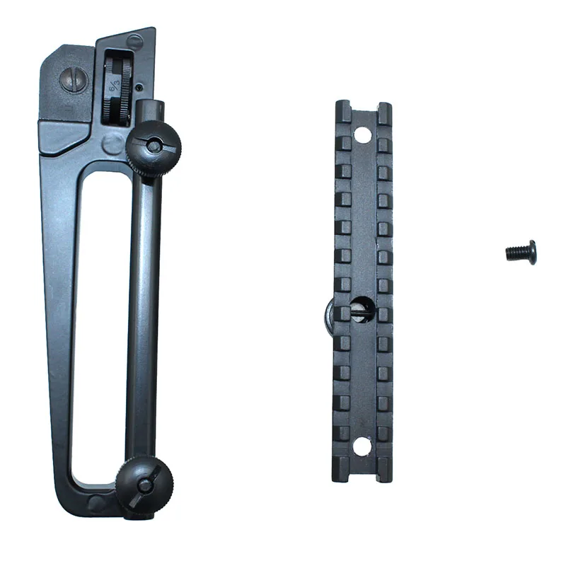 В комплект входит как съемная ручка для переноски, так и рейка, авиационный алюминий и сталь в конструкции, ручка для переноски является прочной и функциональной. Он поставляется со встроенным двойным открытием заднего вида с регулируемой регулировкой ветра и регулировкой высоты. Крепится к любой винтовке с плоским верхом. Совместим со всеми стандартными оптиками Picatinny или Weaver, такими как красные точки, скобы или лупы.