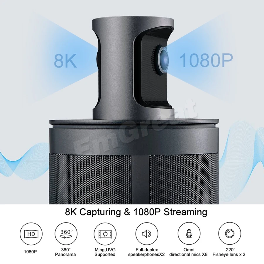 · 【 8K 360 ° захват любой детали 】 захватывает всю комнату в разрешении 8K без прошивки. Идеально подходит для конференц-залов среднего и большого размера.