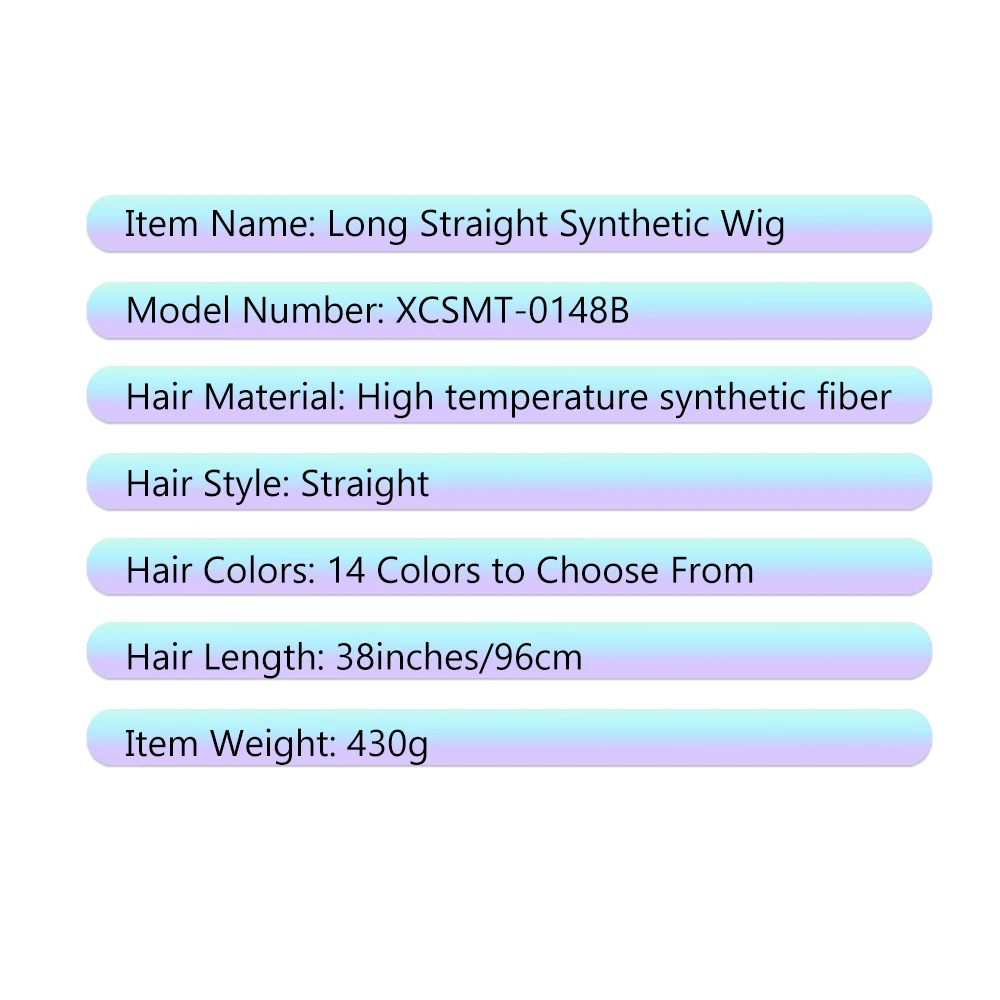 Наименование товара: длинный прямой синтетический парик Номер модели: XCSMT-0148B Материал волос: синтетическое волокно с низкой температурой Стиль волос: прямой Цвета волос: 14 цветов на выбор Длина волос: 38 дюймов/96 см Вес изделия: 430 г