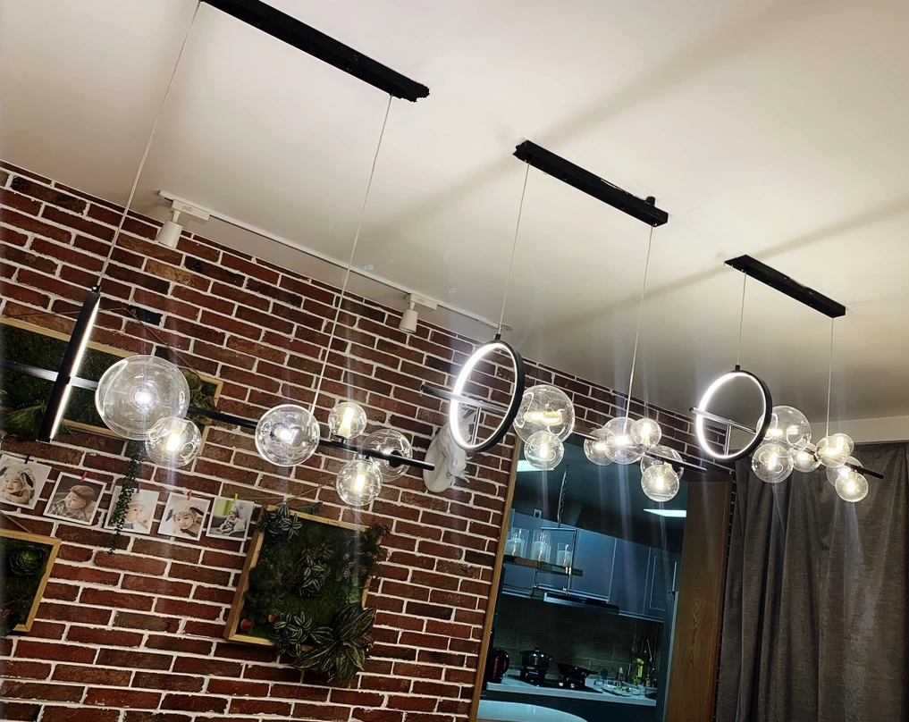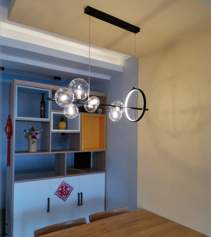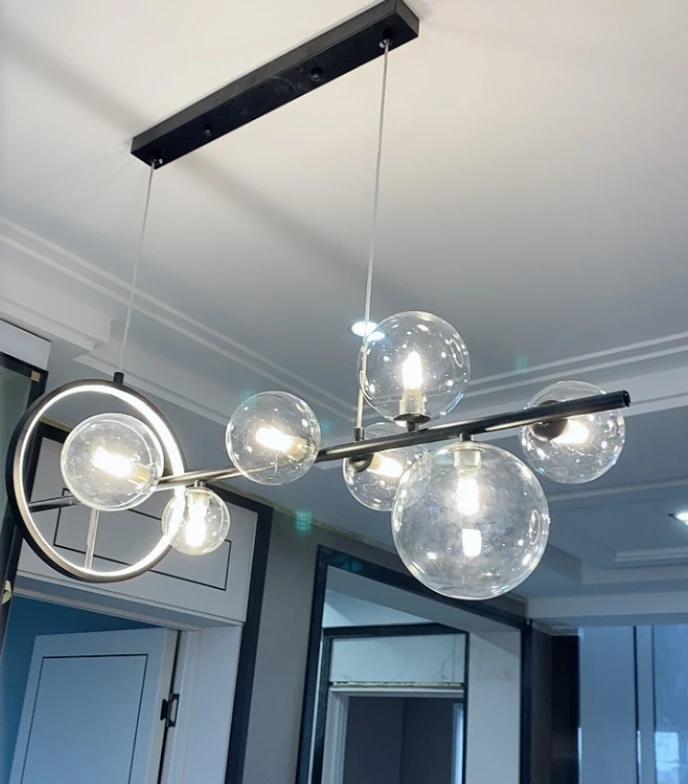 Современный светодиодный Люстра Материал: железо + прозрачное стекло + алюминий Цвет: черный Светильник источник света: светодиодный чип + G4 (в том числе лампы) Размер: длина 90 см, высота 30 см; Длина 120 см и высота 30 см (регулируемая высота подвесного провода) Напряжение: 90-260 В Применение: гостиная, спальня, столовая, ресторан, вилла и т. Д. Настоящая фотография покупателя показывает: