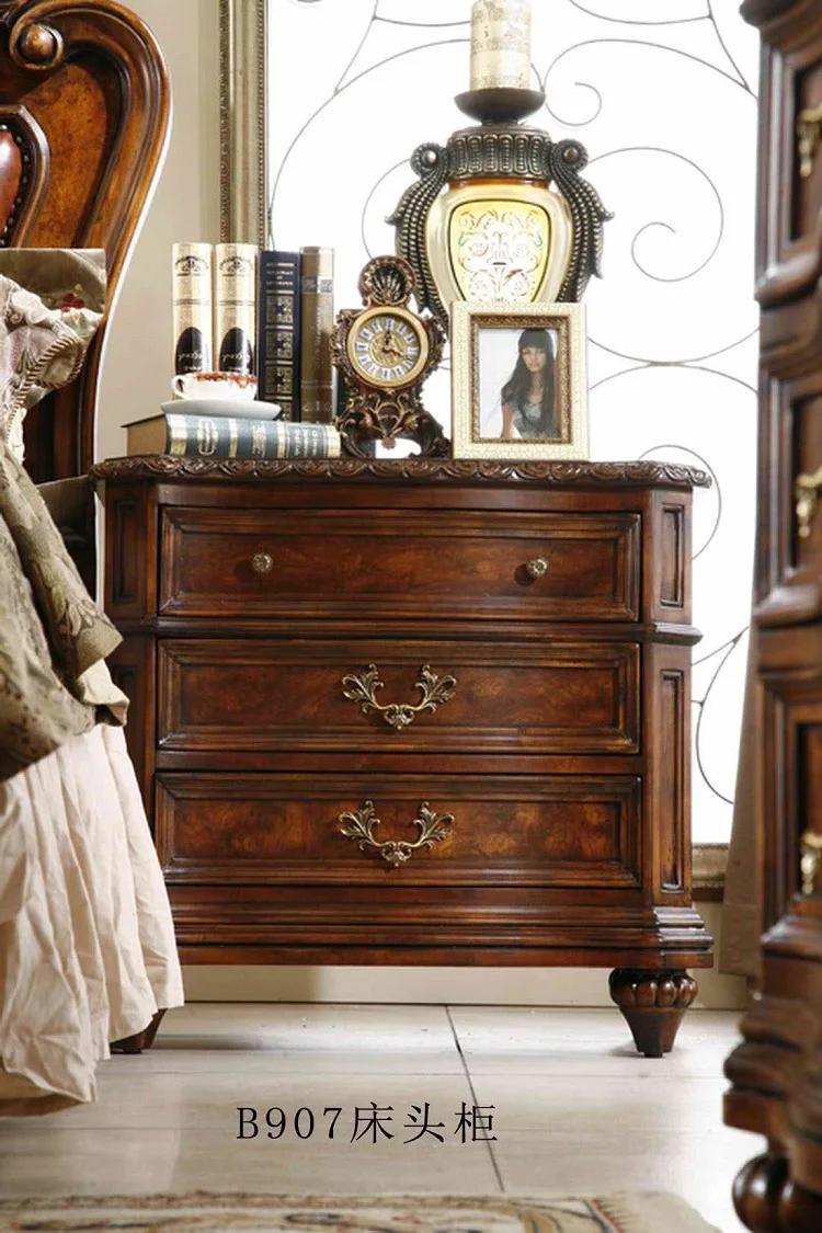Название продукта: европейский стиль, уникальные комплекты для спальни из цельного дерева, антикварные комплекты мебели GH202