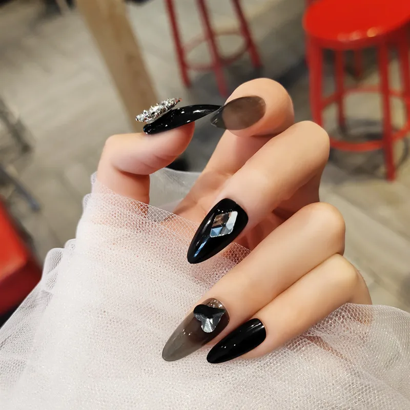 Накладные ногти с черным пронизывающим сердцем, Длинные накладные ногти в европейском и американском стиле, 24 шт.