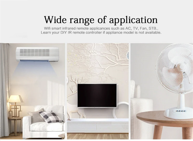 Совместим с Alexa/Echo, Google Home, IFTTT для голосового управления вашим телевизором, STB, кондиционером и вентиляторами. Устройство поддерживает только 2,4G WiFi.