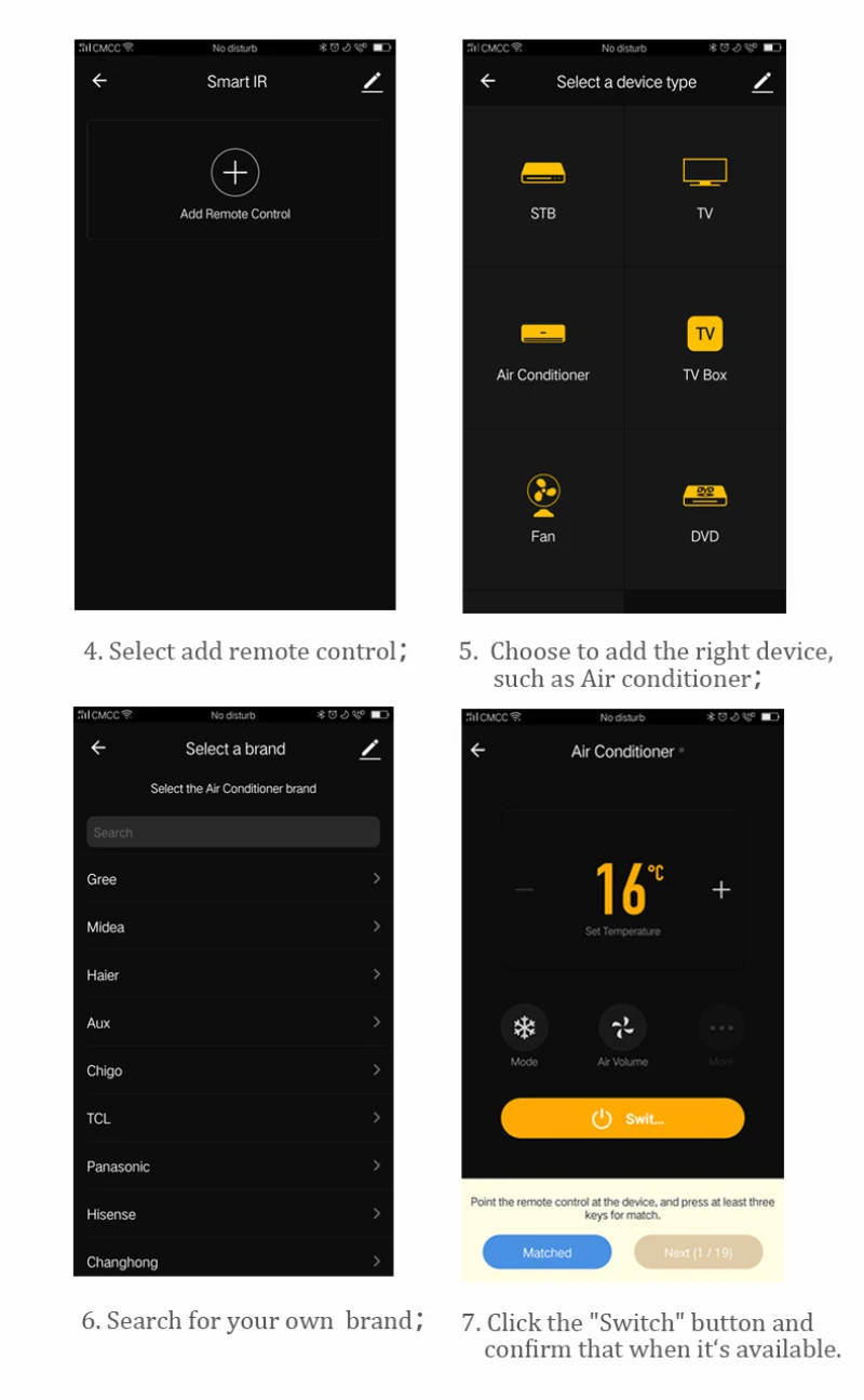 Поддерживает 50000 + IR (38 кГц ИК только в том случае, нет радиочастотных) управляемых устройств, включая свой кондиционер, ТВ, ТВ коробка, DVD, аудио, видео Регистраторы, приемник, и т. д.