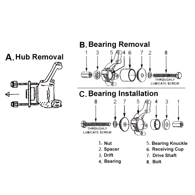 2. Снимайте и заменяйте подшипник переднего колеса с поворотом и сборкой стойки на транспортном средстве