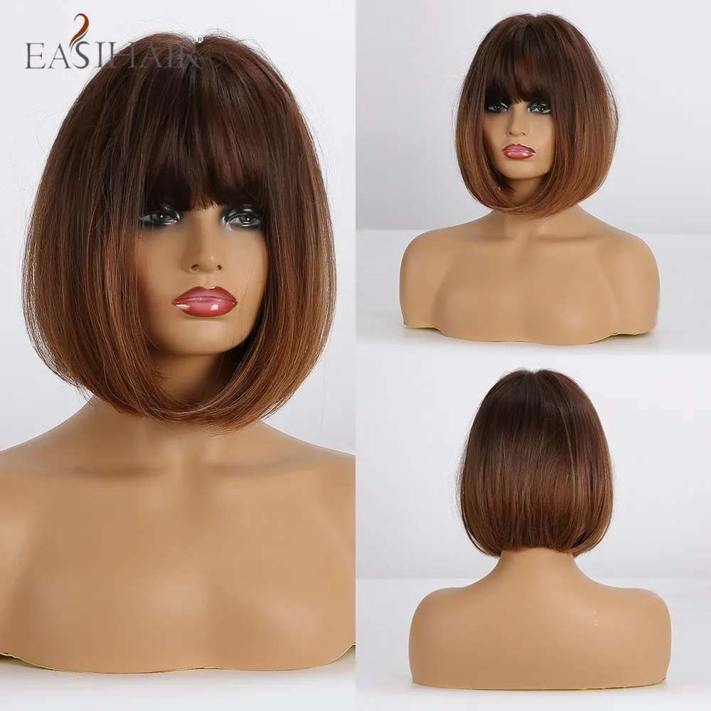 Короткие парики EASIAHIR челка прямые Bobo прическа Омбре черный коричневый Выделите парик косплей термостойкие синтетические парики для женщин