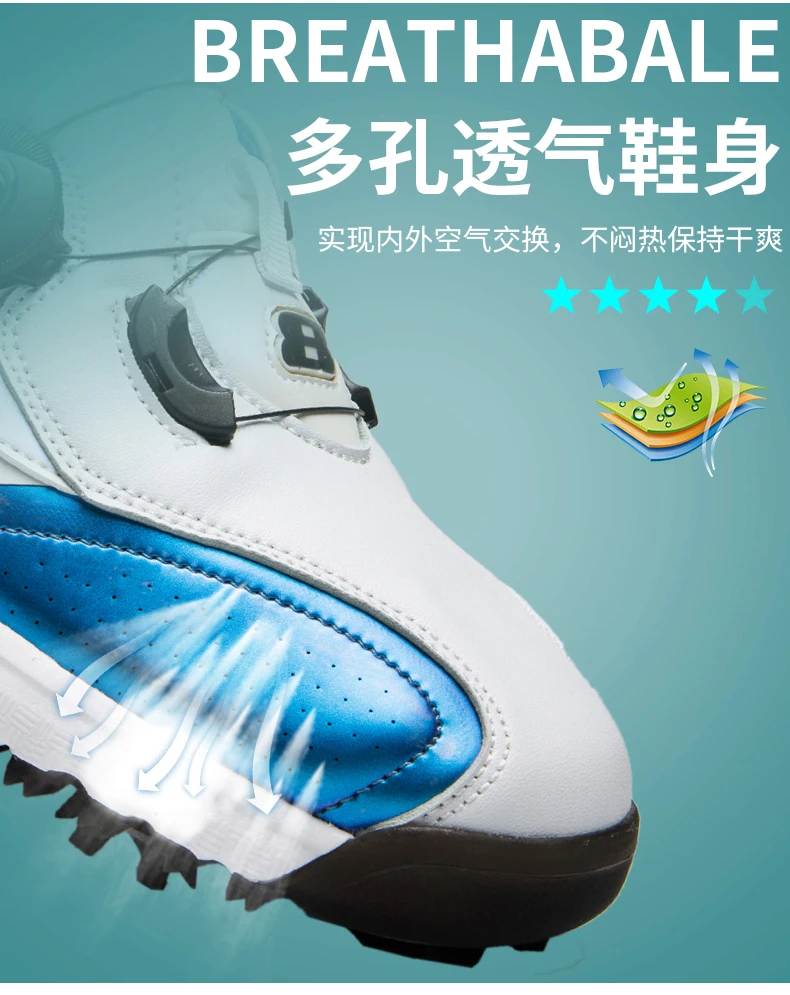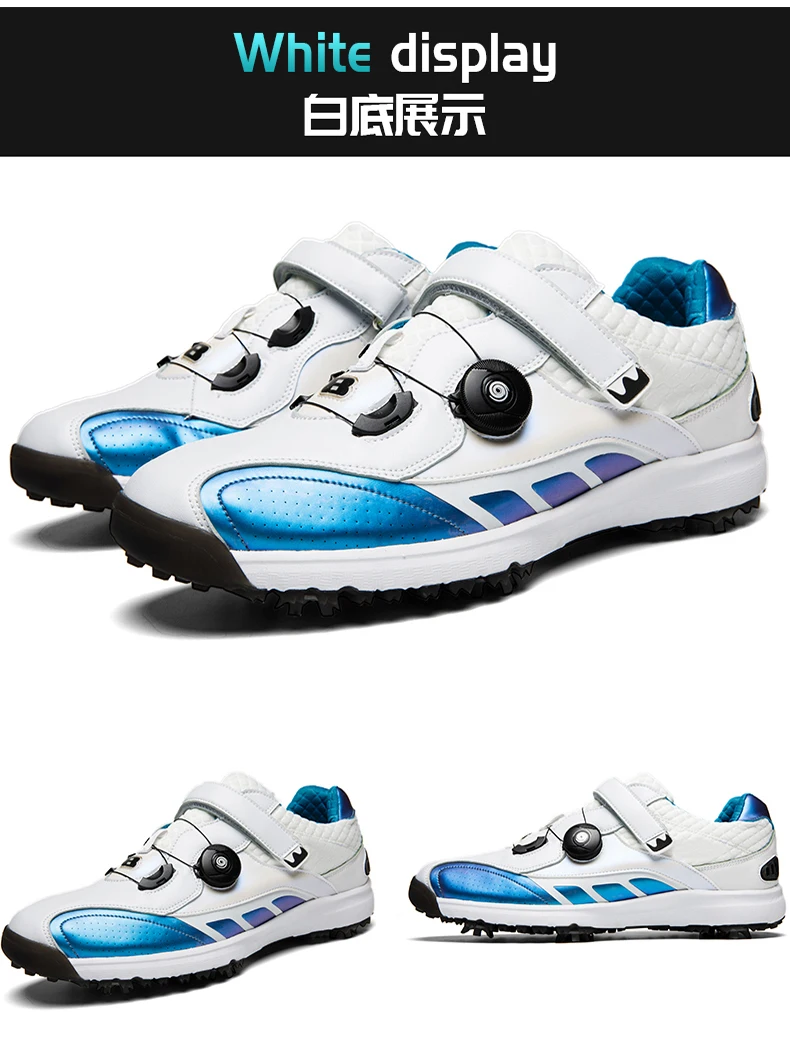 Белая и синяя противоскользящая спортивная обувь для гольфов
