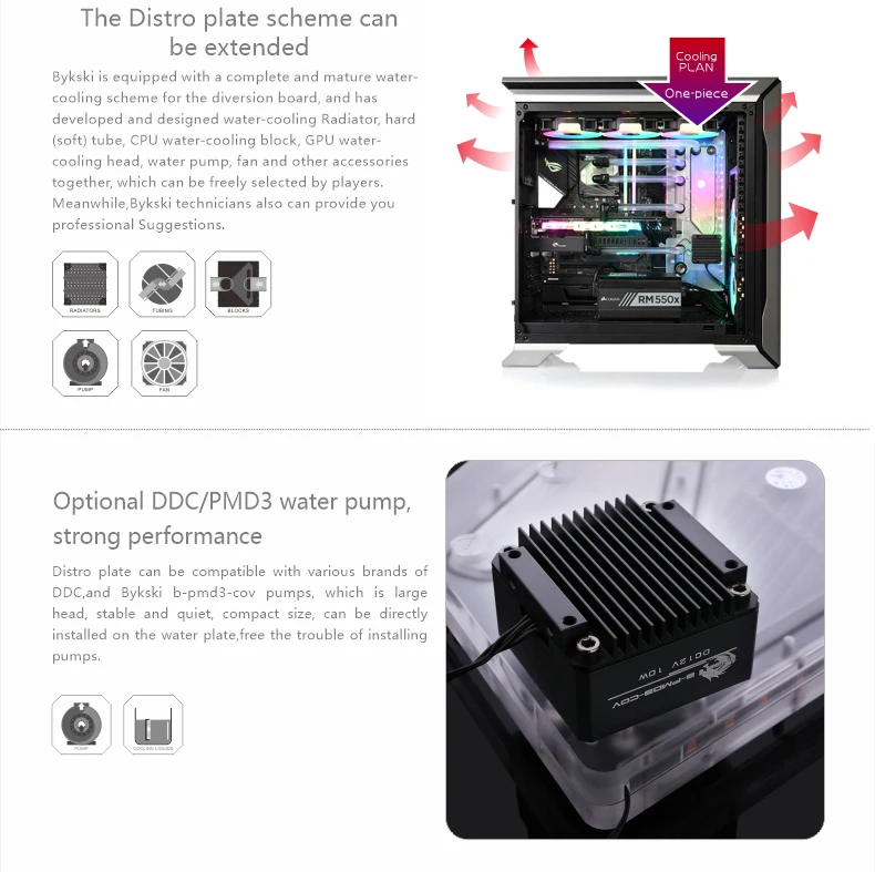 Встроенный насос Интегрированный интерфейс, поддержка Laing DDC/Bykski PMD3 насос, конечно, независимый насос также может быть установлен.