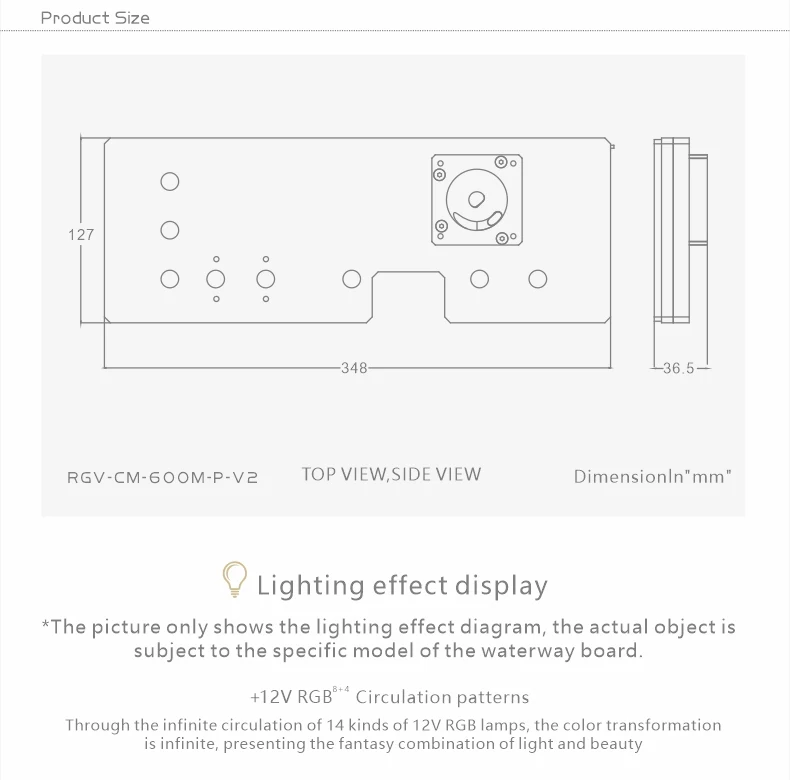 Встроенный светодиод RGB 5 В/12 В, но не включает контроллер RGB, поддерживает контроллер Bykski RGB или подключается к материнской плате, если поддержка.