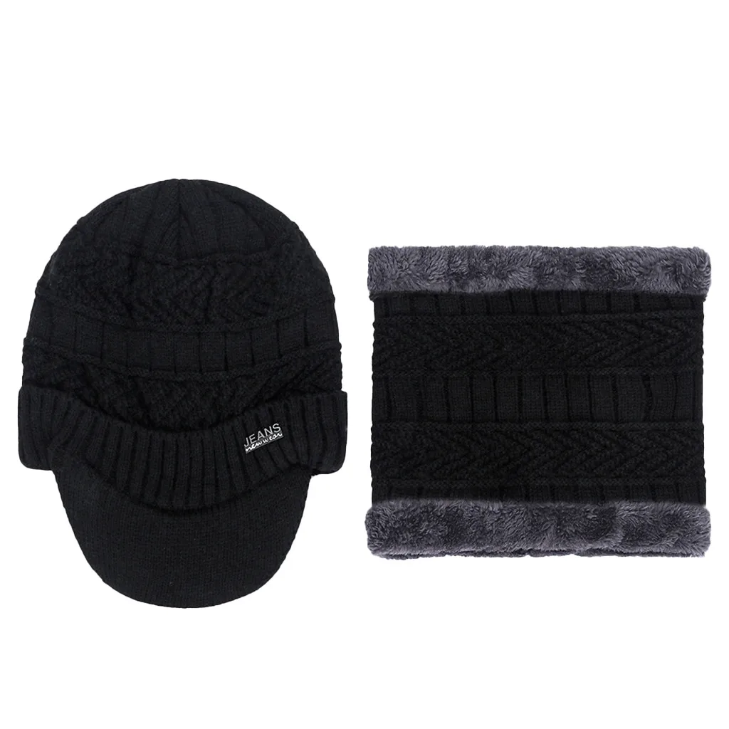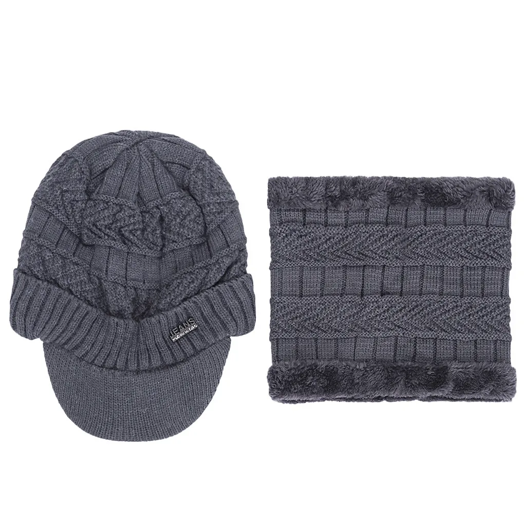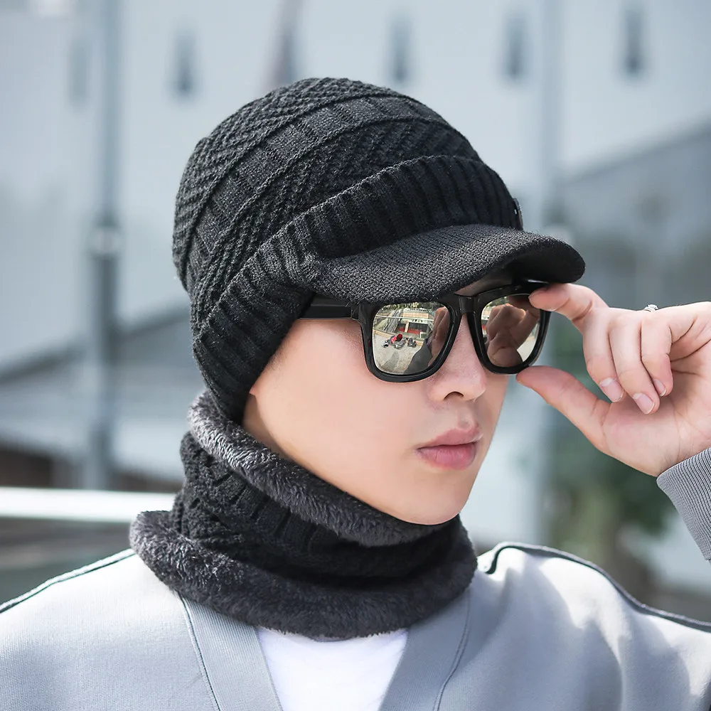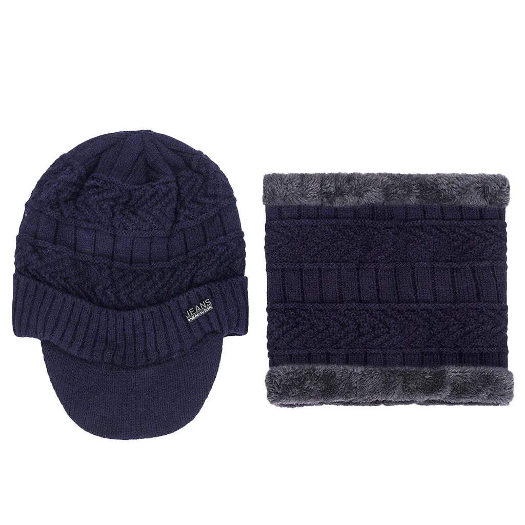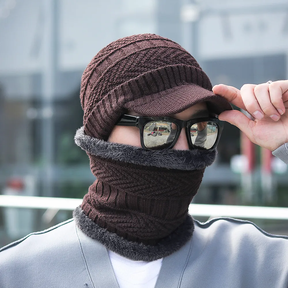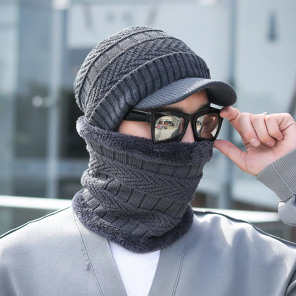 Мужская теплая зимняя шапка и шарф из двух частей, вязаная ветрозащитная шапка