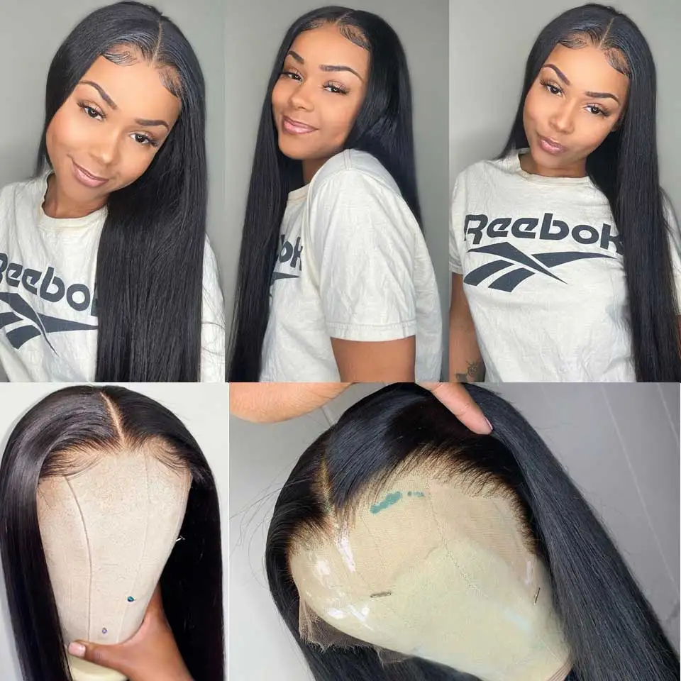 30-дюймовый Прямой парик на шнурке спереди, прозрачный парик на шнурке, прямые парики на шнурке, парики из натуральных волос