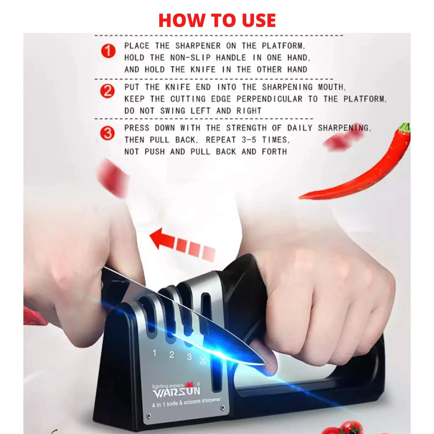 2. Простота в использовании и высокое качество: Этот продукт прост в использовании, просто поместите лезвие в необходимые прорези и Аккуратно потяните нож через несколько раз, чтобы получить лезвие с острым лезвием. Эта система работает с множеством типов ножей. Мы также включили подробную инструкцию для вас, и сборка не требуется.