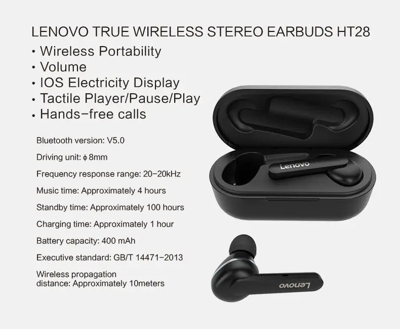 Оригинальная беспроводная гарнитура Lenovo HT28 True