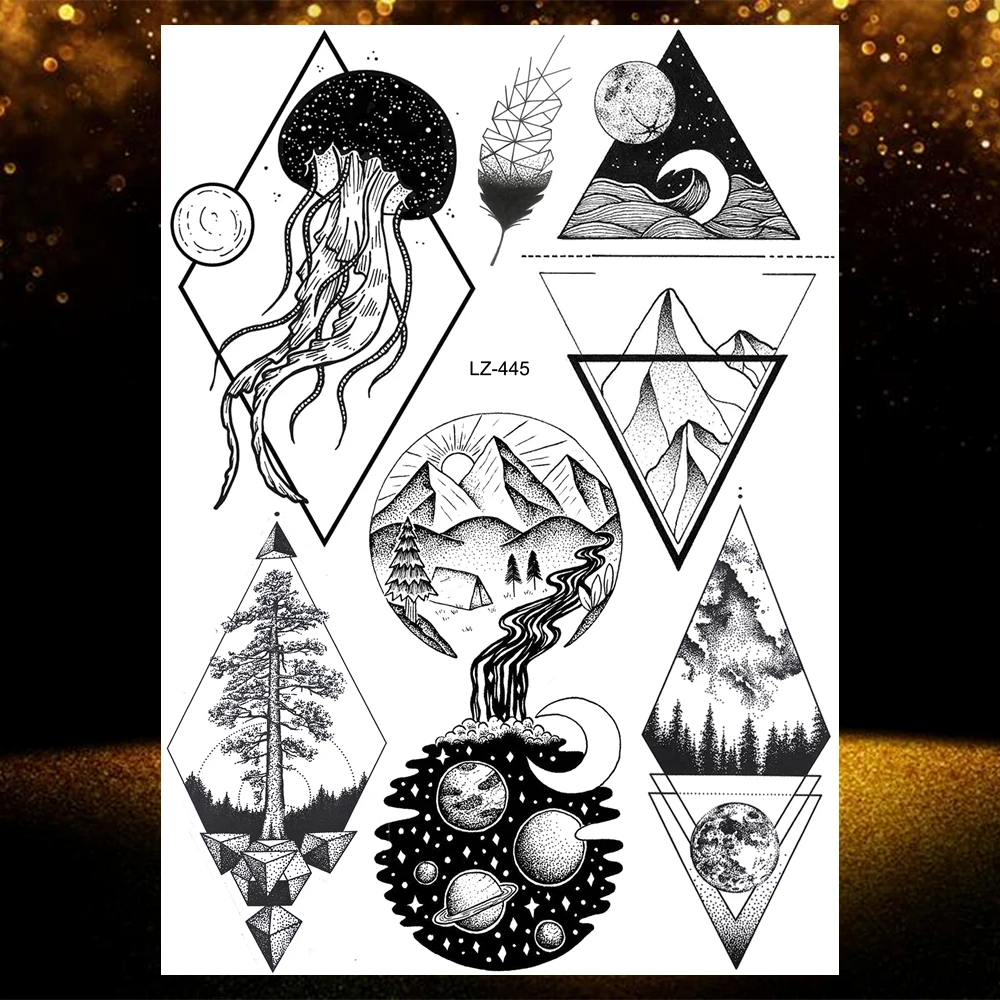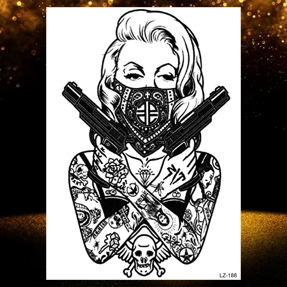 Временные татуировки совы для мужчин и женщин, татуировки с изображением волка, смерти, суклла, Гангстерский пистолет, планеты, тело, руки, татосы, горы