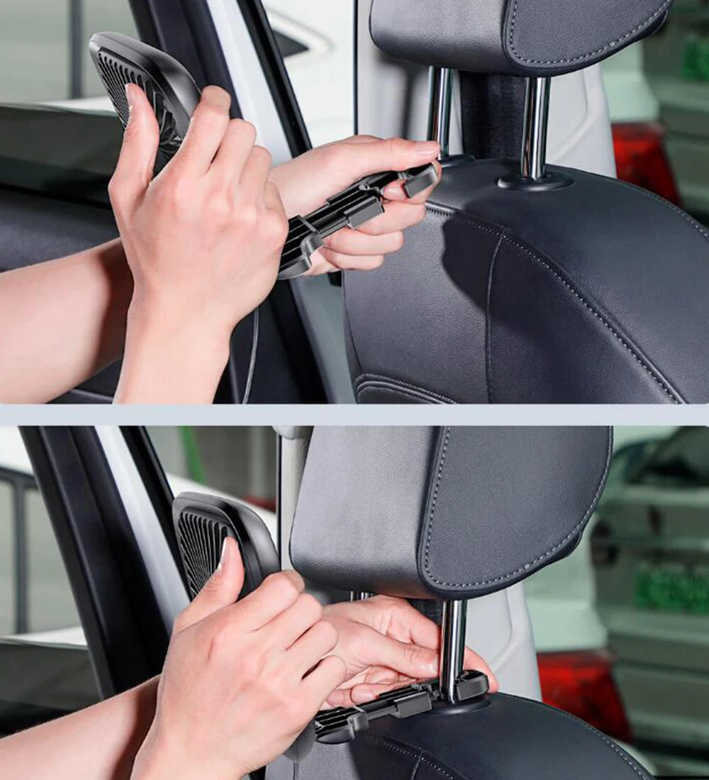 Наименование товара: Складной автомобильный вентилятор заднего сиденья Baseus Цвет: черный, белый Материал: АБС-пластик + Поликарбонат Вход: 5 В/1 А Мощность: 3,6 Вт Способ установки: Пряжка Фиксированная часть: подголовник сиденья Применение: автомобиль