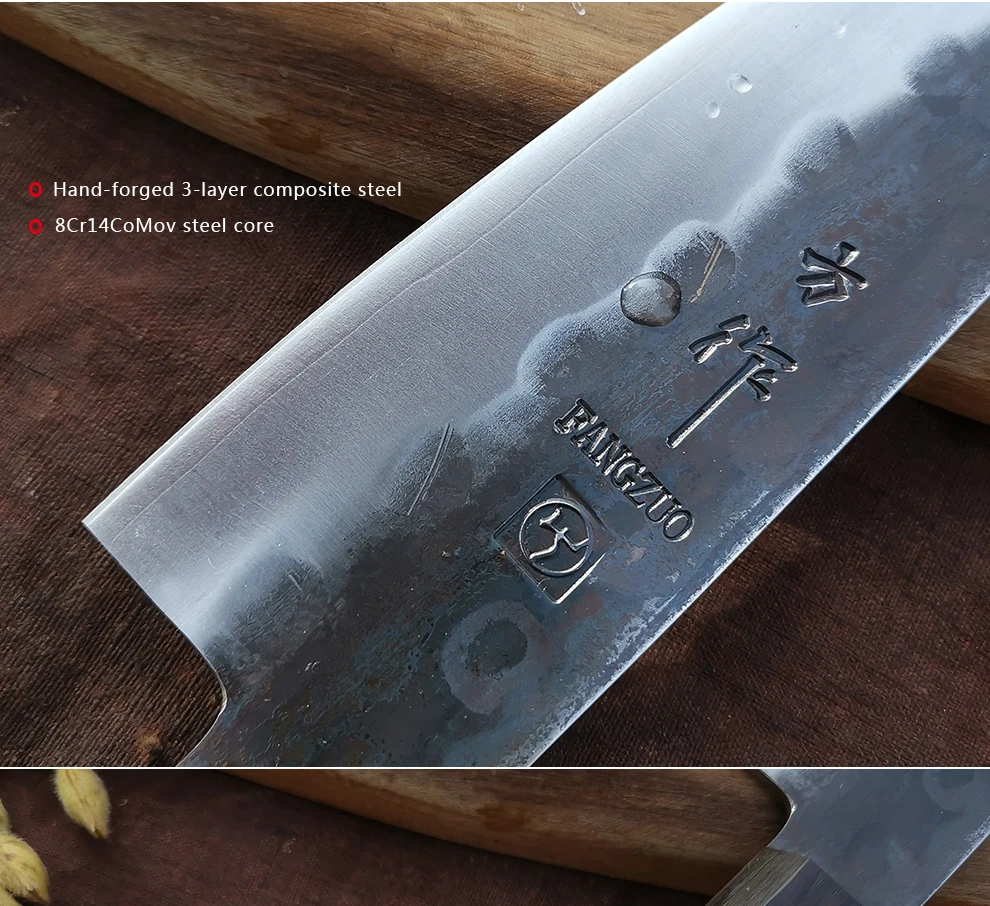 Бренд: FANGZUO Модель: zhen-F110 нож Santoku Материал лезвия: 3 слоя композитная Сталь (8Cr14CoMov core Сталь) Длина лезвия: 174 мм Полная длина 320 мм Толщина: 2,5 мм Вес: 186 г Ремесло: Ручная ковка Твердость: 59HRC Ручка: Эбеновое дерево и оливковое дерево Используется для: подходит для продвижения кухонной кухни, резки мяса, нарезки овощей, фруктов и т. д. (Не используйте его для резки костей или твердой пищи