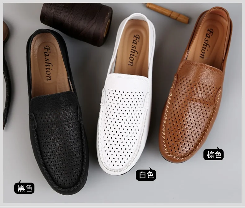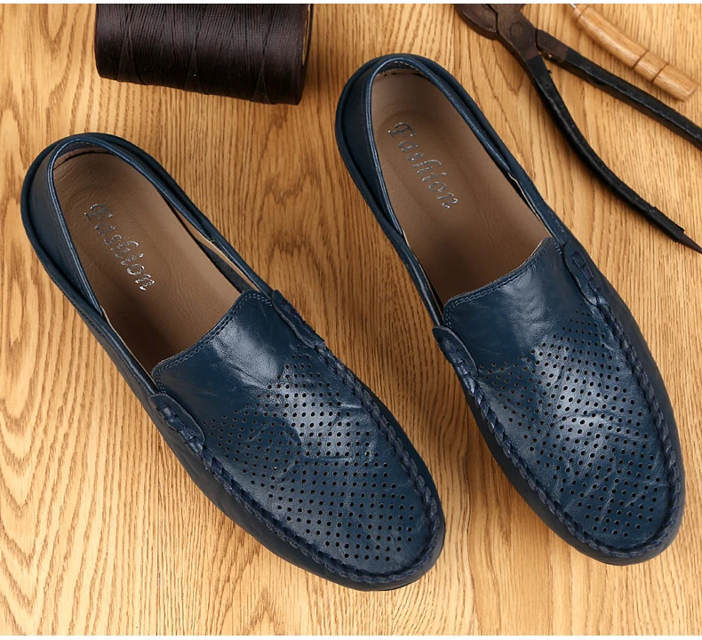 Туфли мужские из натуральной кожи Мокасины дышащие без застежки размера плюс